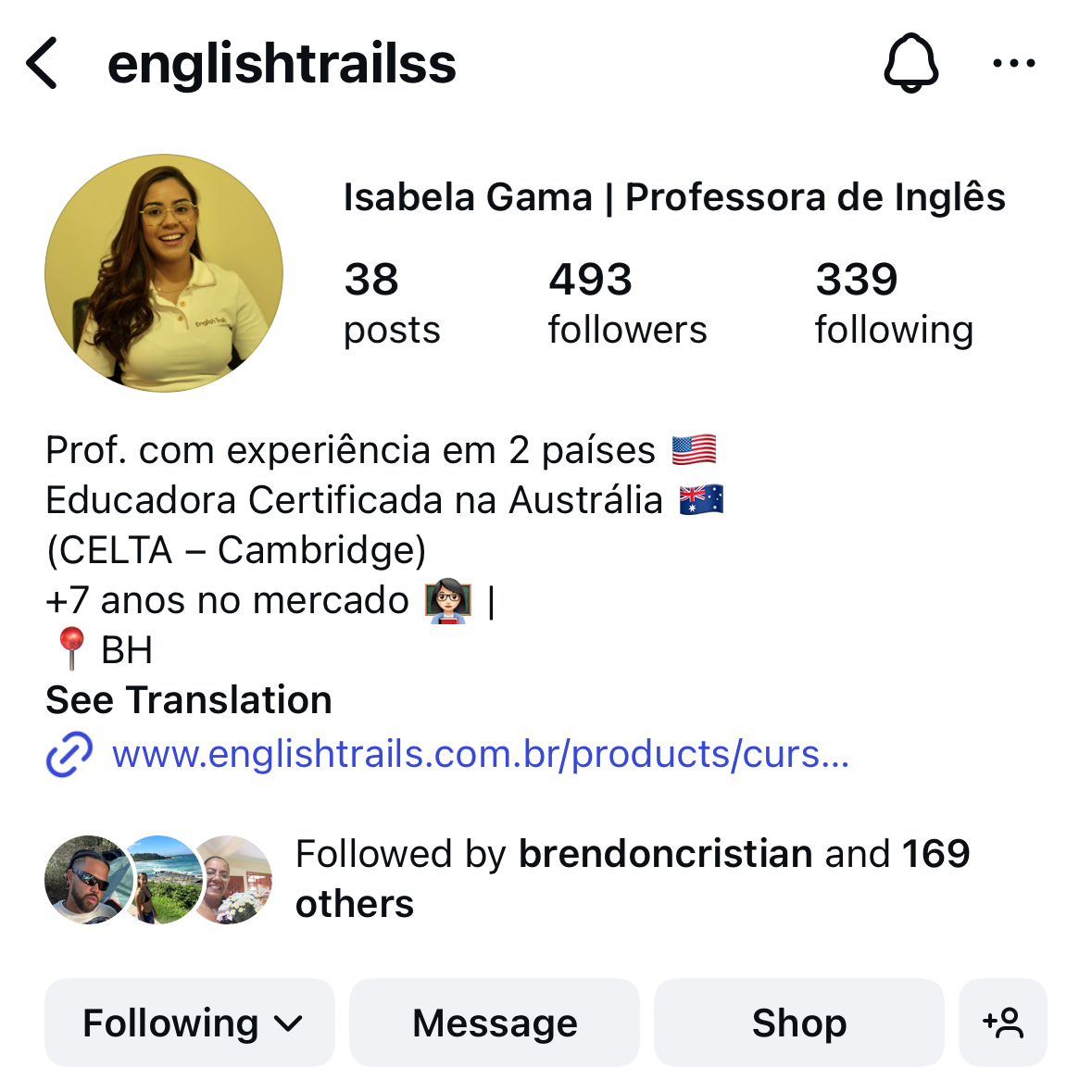 🌟 No meu Instagram, compartilho minha experiência com alunos de 4 países diferentes e apresento o Trilha do Inglês, uma abordagem prática e divertida para aprender o idioma. Vamos transformar o aprendizado de inglês em uma jornada cheia de descobertas? Acesse meu perfil e confira mais! 💬✨